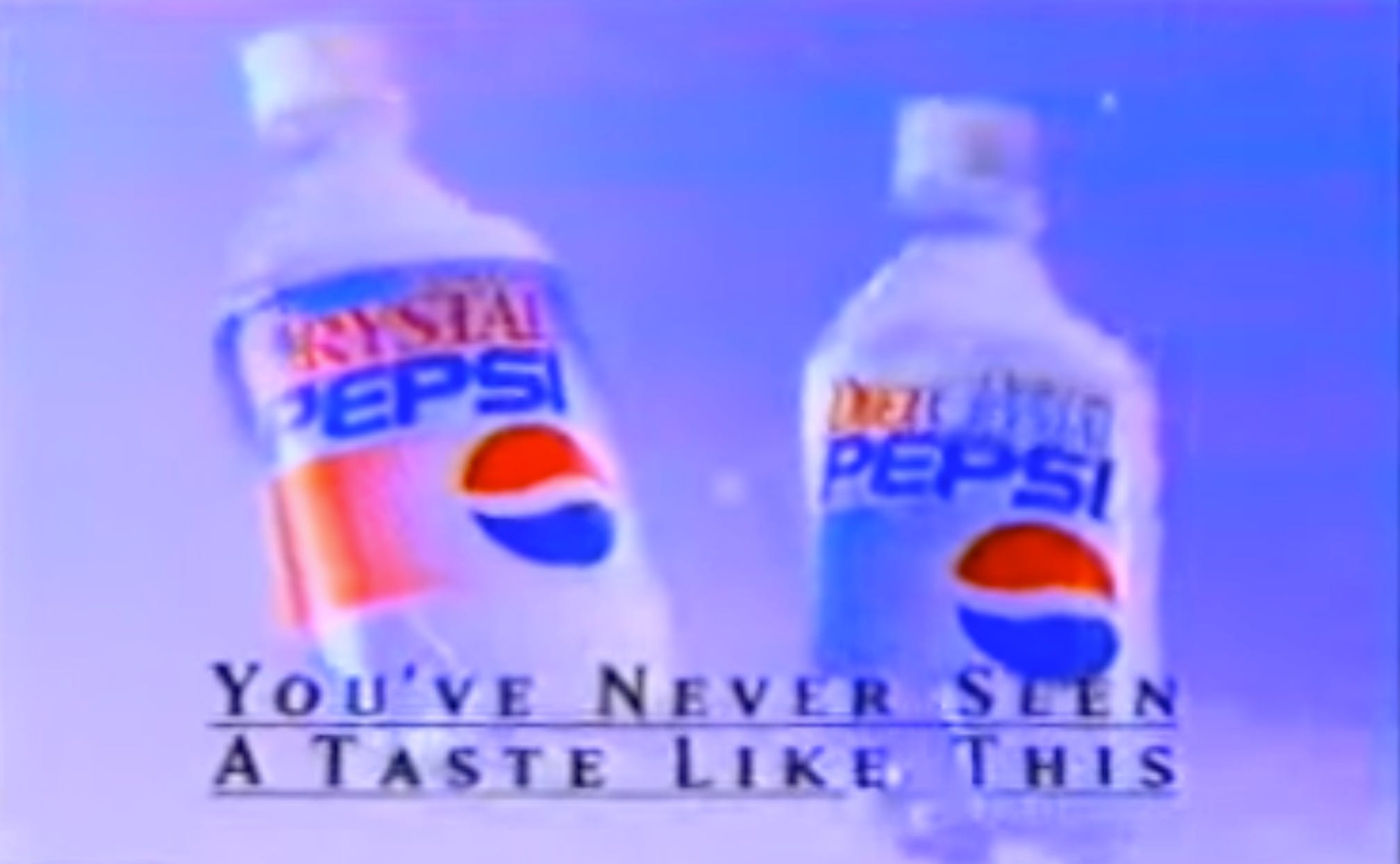 It was never meant to succeed. It was designed to confuse consumers into thinking Crystal Pepsi was a diet drink. Tab Clear was labeled “sugar free” to reposition Crystal Pepsi by association. Maybe you’re in a gas station or supermarket and see a Tab Clear, and associating it with normal Tab, you try one. You hate it. You learn that clear cola tastes bad. Next week, you are in the store again and see a Crystal Pepsi. Yuck city. You already were taught clear colas taste bad.
