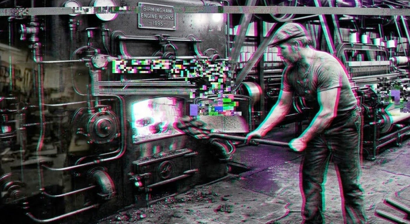 It is 1895. A stoker named Leon shovels coal into a factory furnace in Birmingham, feeding the fire that drives the engine that powers the loom. He has done this twelve hours a day, six days a week. The engine becomes more efficient, and one furnace does the work of ten. Energy becomes more important than ever.