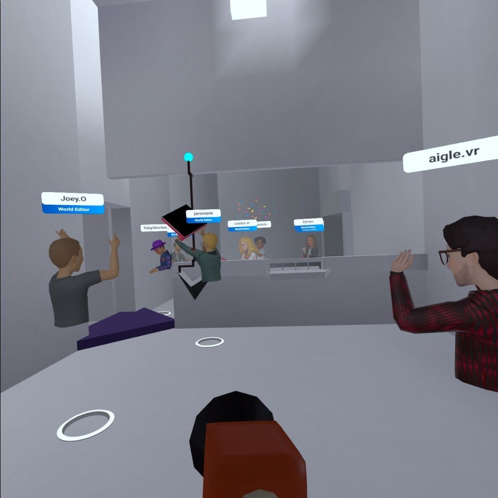 By June, we went public. Collaborative Frontiers was a two-week open event with nearly sixty signups, a self-organizing team structure on a virtual moonbase (people walked themselves to Red or Blue platforms, no breakout rooms, no assignment), and a training program called the Collaboration Enrichment Center that consistently took people from zero building experience to creating functional worlds in under an hour. One participant had purchased their Quest that morning (the first gaming console they had owned since an Atari).